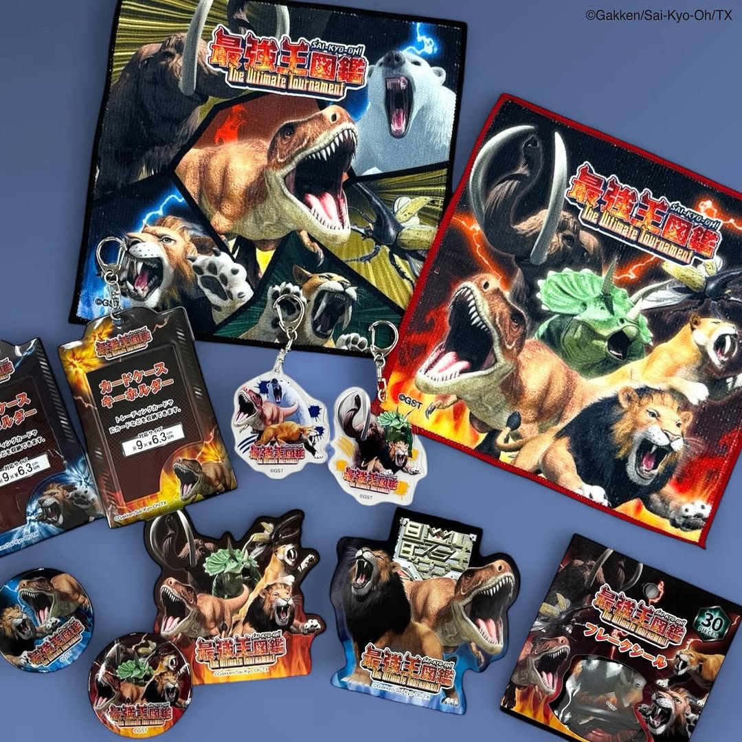 アニメ『最強王図鑑』に登場するキャラクターたちをデザインした、日常使いできる雑貨シリーズです。キーホルダーやシールなどの定番アイテムが中心で、学校やおうちでさりげなく楽しめるのが特徴です。派手すぎないサイズ感なので、普段使いにも取り入れやすい印象です。