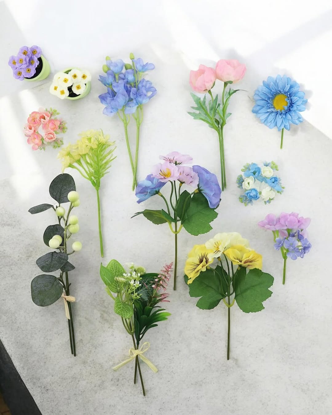 アートフラワーは個体差があり、色味やボリュームが若干異なる場合があります。複数購入する場合は、店頭でバランスを見て選ぶと安心です。また、軽い素材のため倒れやすいこともあるので、安定した場所に置くか、ポットに重さを足すなどの工夫をすると扱いやすくなります。