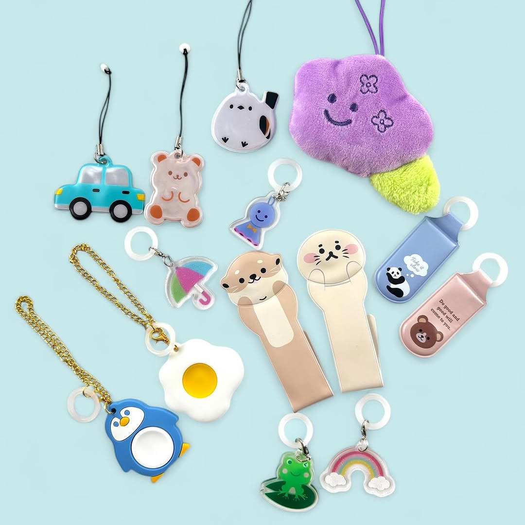 傘以外にも応用できます。例えば、バッグのファスナーに付けてワンポイントにしたり、ペットボトルホルダーの目印にしたりと、使い道は意外と広め。マグネットタイプはロッカーや玄関周りで一時的に固定するなど、ちょっとした工夫も可能です。